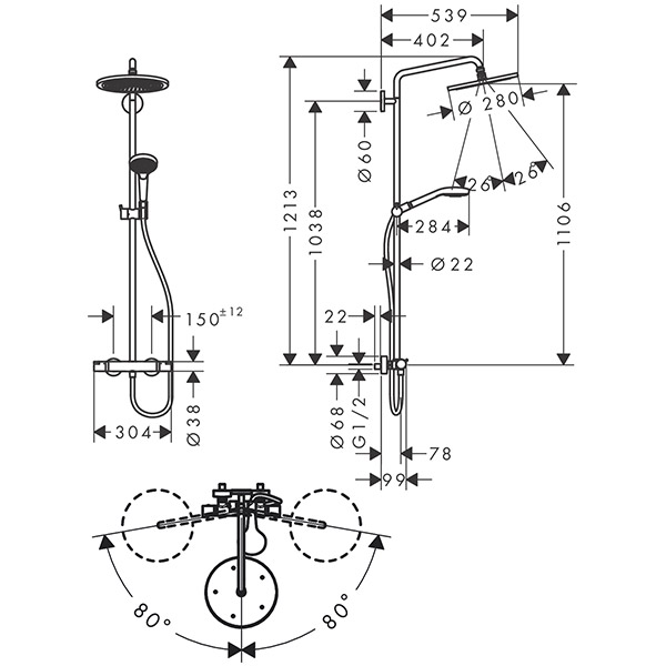 Верхний душ, ручной душ, термостат для душа, штанга для душа, держатель для душа, душевая штанга