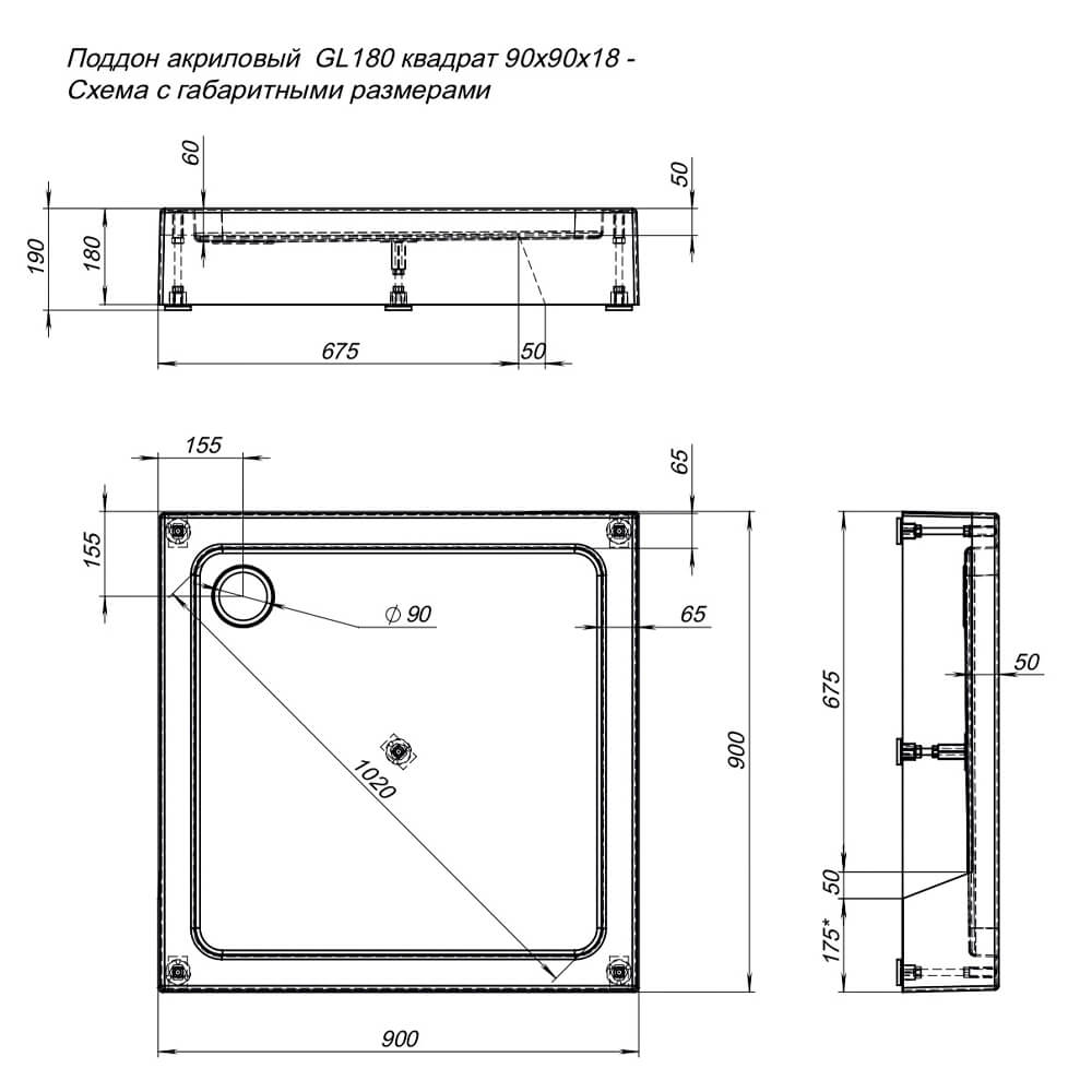 Поддон для душа Aquanet 90х90 белый с сифоном